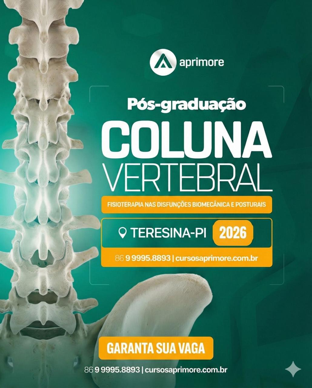 CURSOS APRIMORE Iniciou a coordenação das turmas do curso de Pós Graduação em Coluna Vertebral, onde a mesma é autorizada pela Sociedade Brasileira de Fisioterapia em Coluna – SOBRAFIC. O tema é inovador com profissionais renomados nacional e internacionalmente.